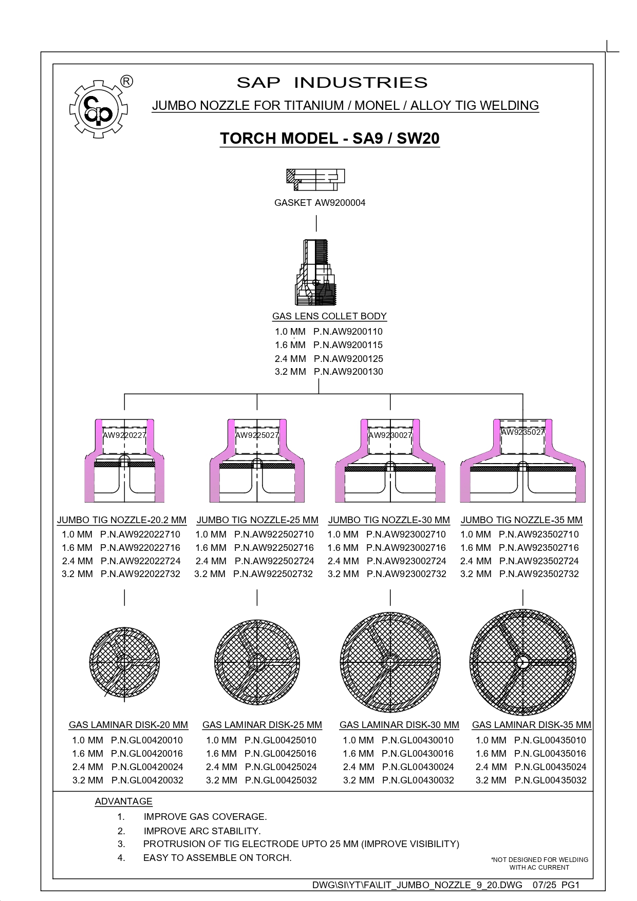 Jumbo Tig Nozzle / Monster Tig Nozzle - AW